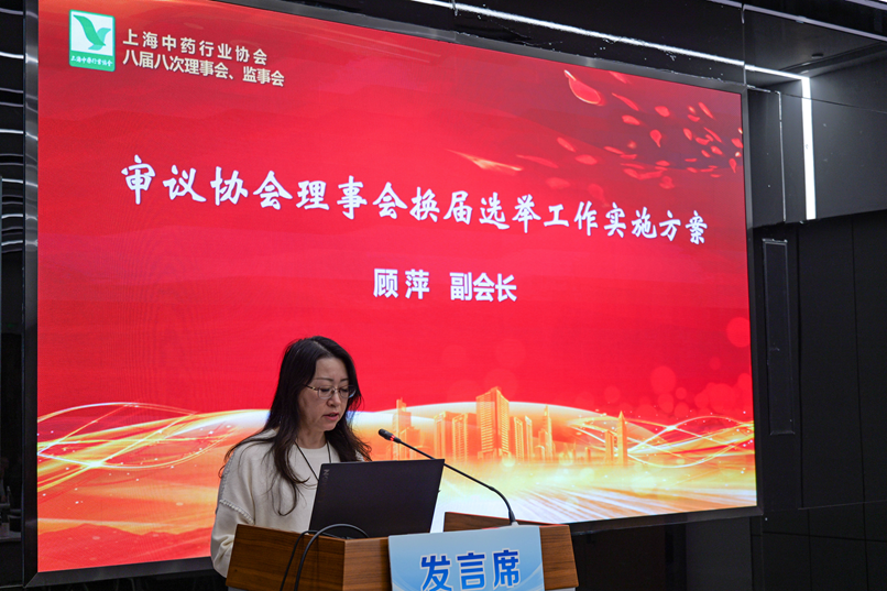 协会副会长顾萍作《上海中药行业协会换届选举筹备工作实施方案(草案)》的报告。