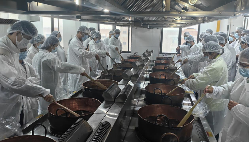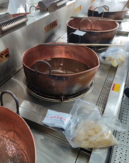 实操培训在“上海中药行业协会职业培训实训基地--上海雷允上西区药业有限公司煎膏中心、上海康桥中药饮片有限公司煎膏部”内进行。相关单位为此次实训提供了10余个熬膏炉位供学员上手操作,并由多名具备近长年膏方加工经验的老师傅进行带教指导。