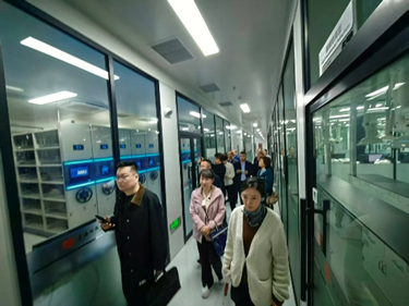 崔燕一行在同济堂药业、虹桥中药饮片的质检中心、智能煎药中心参观考察。