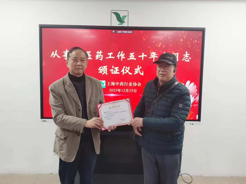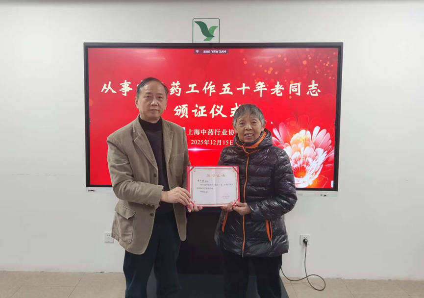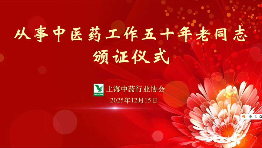 为做好本市中医药传承和创新发展工作,激励广大中医药从业人员不忘初心、砥砺前行,增强广大中医药工作者光荣感、使命感和责任感,在上海市卫生健康委员会、上海市中医药管理局指导下,上海市医师协会、上海中药行业协会自2020年起联合组织开展上海市从事中医药工作五十年人员荣誉证书颁发工作,每年举行一次。12月15日上午,协会举行2025年从事中医药工作五十年老同志颁证仪式。