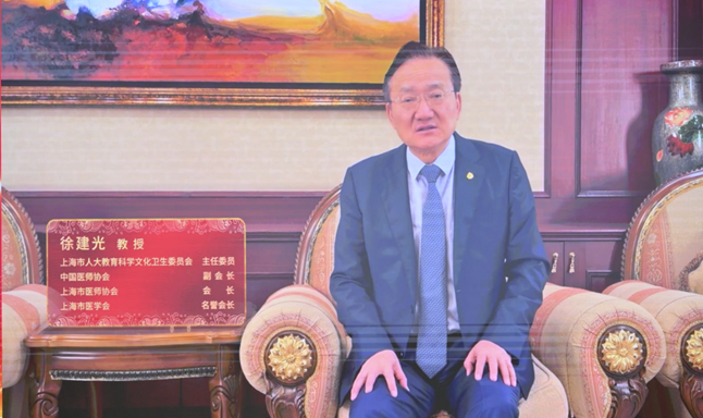上海市人大教科文卫委员会主任、中国医师协会副会长、上海市医师协会会长徐建光线上致贺词。