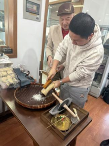 在实操环节,学员们在老师的指导下,动手实践水飞朱砂、蛤粉炒阿胶珠、镑制水牛角、清炒王不留行等特色技艺。